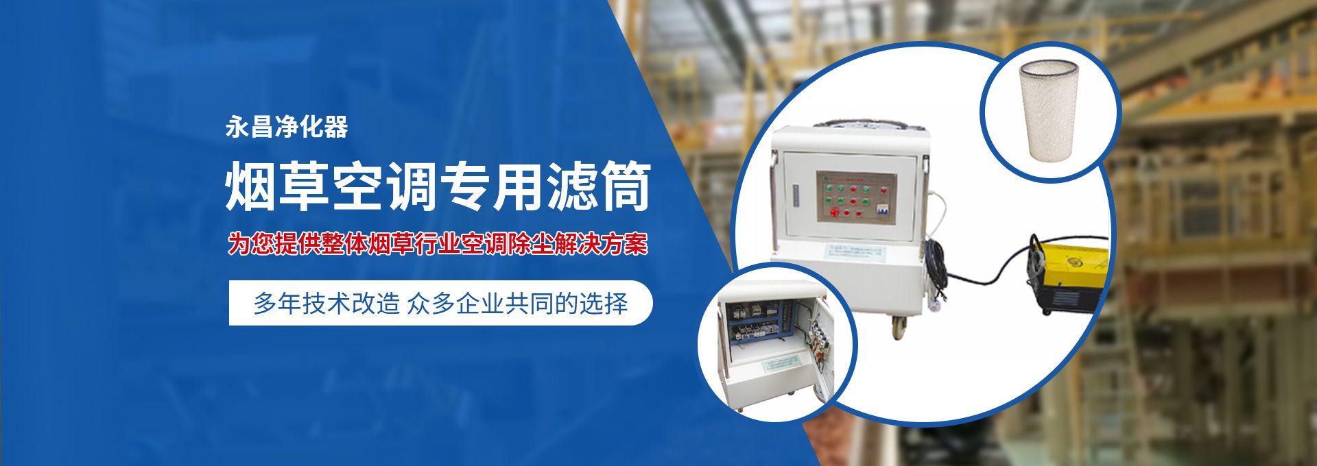 新鄉(xiāng)市永昌凈化器有限公司是生產(chǎn)煙草行業(yè)空調(diào)除塵專用濾筒的企業(yè)。注冊資金1000萬元。已通過ISO9001國際質(zhì)量管理體系認證。對產(chǎn)品有嚴(yán)格的管理制度和售后服務(wù)。我公司以誠信、負責(zé)、守信譽、重質(zhì)量的精神所生產(chǎn)的產(chǎn)品,近幾年來在煙草行業(yè)受到廣泛應(yīng)用,并受到用戶的一致好評。 從一九九四年以來為煙廠的空調(diào)設(shè)備服務(wù)。十幾年來,我們不斷走出去請進來學(xué)習(xí)新技術(shù)。定期到用戶那里咨詢情況:互相交流,認真聽取寶貴意見,不斷提高產(chǎn)品質(zhì)量。從經(jīng)濟和安全,方便的角度出發(fā),根據(jù)煙廠濕度大的生產(chǎn)環(huán)境和濾筒收集到的含酸堿、氧化劑的粉塵。在空調(diào)箱工作狀態(tài)下我們頂著巨大的風(fēng)壓危險在箱內(nèi)停留了幾分鐘,認真查看濾筒工作情況,發(fā)現(xiàn)濾筒有并死狀態(tài),造成濾筒不過濾、不過風(fēng)、壓差高的現(xiàn)象。經(jīng)幾十次試驗分析,在標(biāo)本兼治的原則下,有針對性的解決了這一問題。 我公司針對煙廠制絲、卷接包、混絲間、儲絲房、冷卻床、梗膨化等不同的生產(chǎn)環(huán)境,